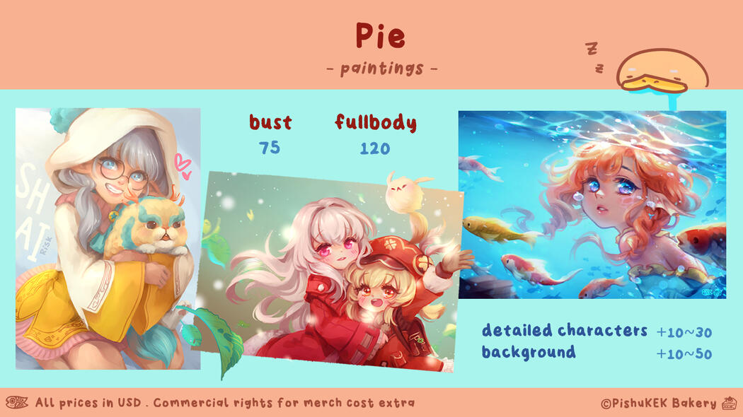 custom rigs | +50-100*over complicated characters/ flawed art files will cost extra15% discount if you ordered a Mille Fueille Cake