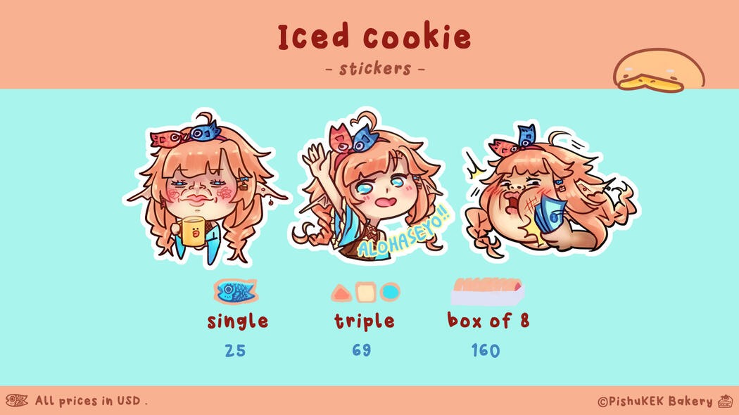 Home of kyoot confectionery and the best keks!Pishukek Bakery was founded back in late 2021 when Pishu left the fish nation... she banished herself for being cannibal, self reproduced as a hooman and joined streams to fish- now she helps others become hooman too, with her keks!If you wish to feed Pishu, you can buy cakes here to support her!