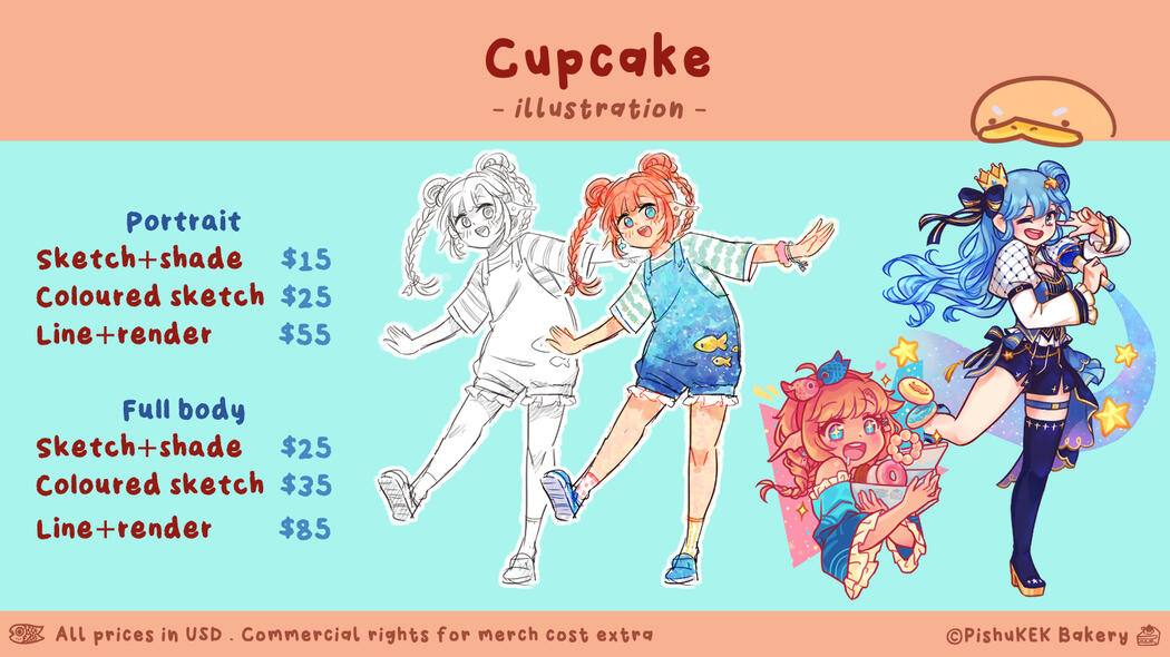 custom rigs | +50-100*over complicated characters/ flawed art files will cost extra15% discount if you ordered a Mille Fueille Cake